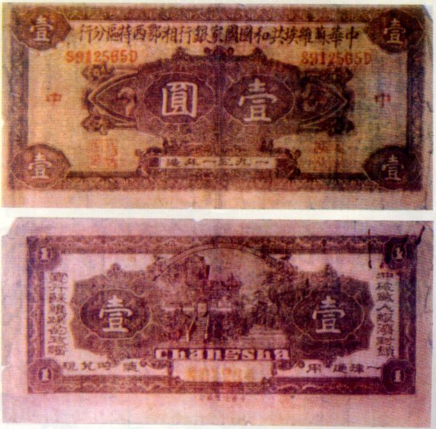 [图文]中华苏维埃共和国国家银行湘鄂西特区分行银币券  1元         ★★★