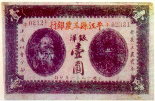 [组图]平江县工农银行光洋票、银洋票   1元         ★★★