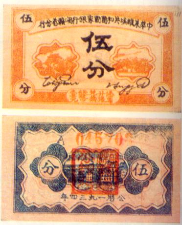 [组图]中华苏维埃共和国国家银行湘赣省分行银币券   5分         ★★★