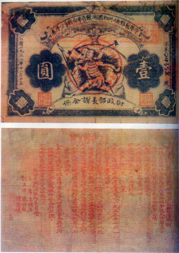 [图文]中华苏维埃共和国湘赣省革命战争公债券改作银币券   1元         ★★★