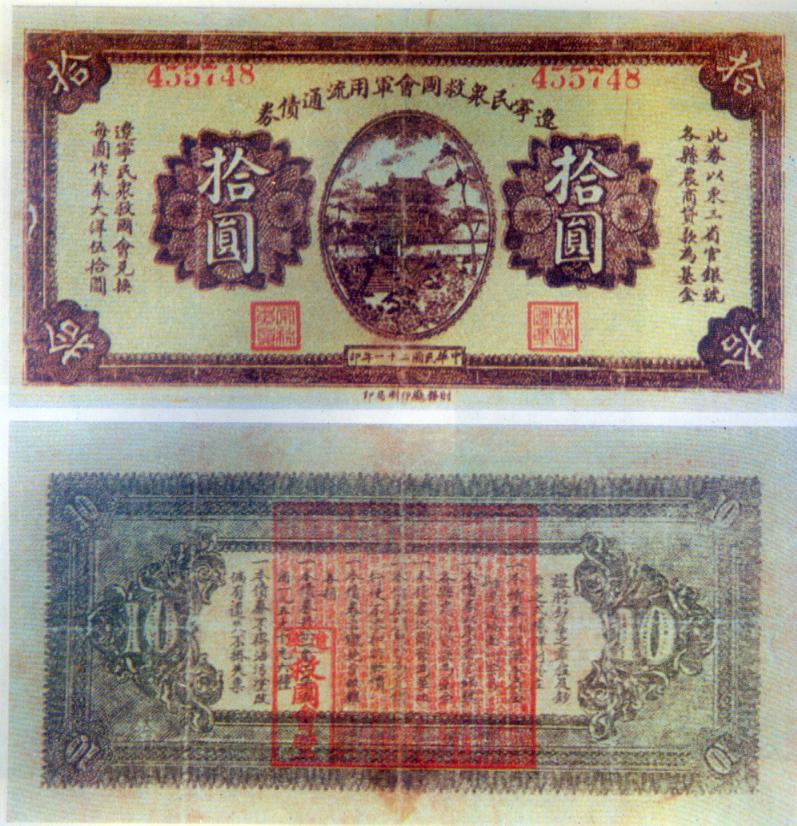 [图文]辽宁民众救国会军用流通债券   10元         ★★★