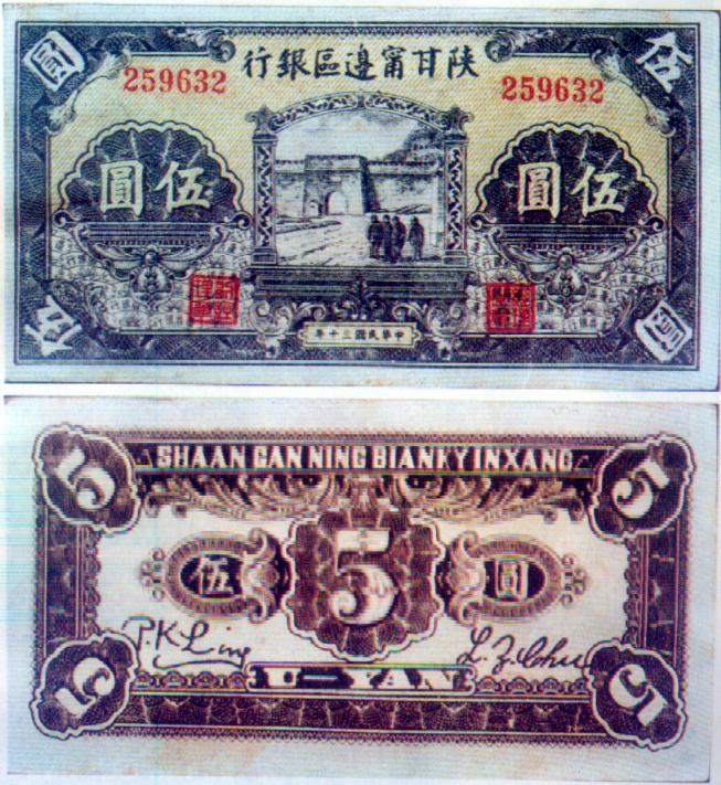 [图文]陕甘宁边区银行币   5元         ★★★