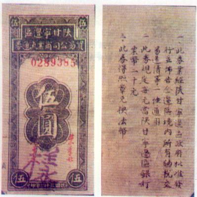 [图文]陕甘宁边区贸易公司商业流通券   5元         ★★★
