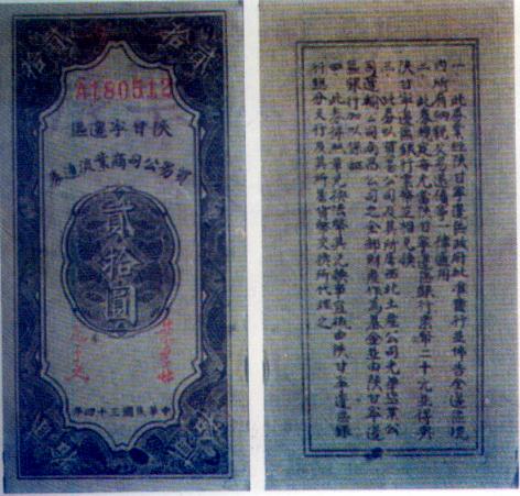 [图文]陕甘宁边区贸易公司商业流通券   20元         ★★★