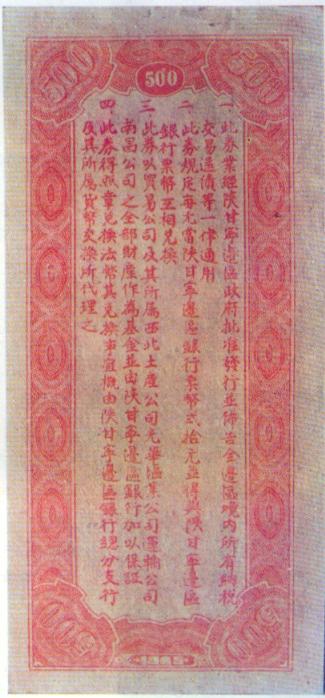 [组图]陕甘宁边区贸易公司商业流通券   500元         ★★★