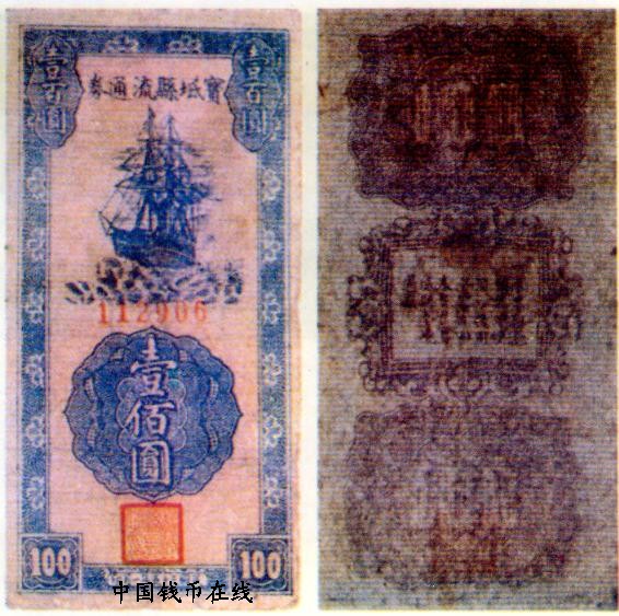 普通革命区币[冀东各区县流通券][图文]宝坻县流通券   100元刘扬03-28