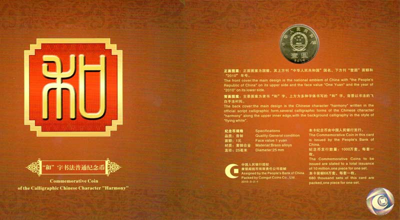 2010年“和”字书法普通纪念币精制