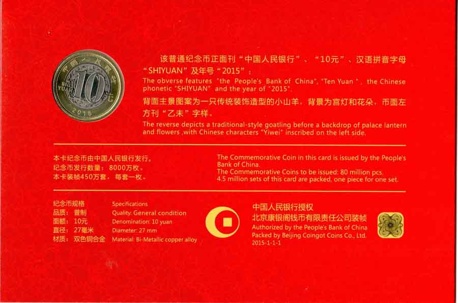 2015岁普通纪念币 贺岁册