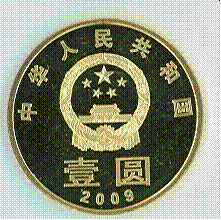 该普通纪念币正面刊“中国人民银行”、“1元”和汉语拼音字母“YIYUAN”字样及“2009”年号。