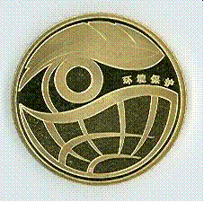该普通纪念币背面主景图案由抽象表现的眼睛、叶子和地球组成,表达了人类对赖以生存的自然环境的关注。内缘右方刊“环境保护”字样。