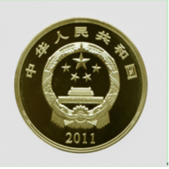 该普通纪念币正面图案为国徽,内缘上方刊“中华人民共和国”国名,内缘下方刊“2011”年号。