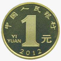 2012年贺岁普通纪念币正面刊“中国人民银行”、“1元”和汉语拼音字母“YIYUAN”及“2012”年号;背面主景图案为一个着中国传统服饰的小男孩在舞龙。内缘右下方刊“壬辰”字样。