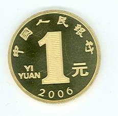 该纪念币正面刊“中国人民银行”、“1元”和汉语拼音字母“YIYUAN”字样及“2006”年号。