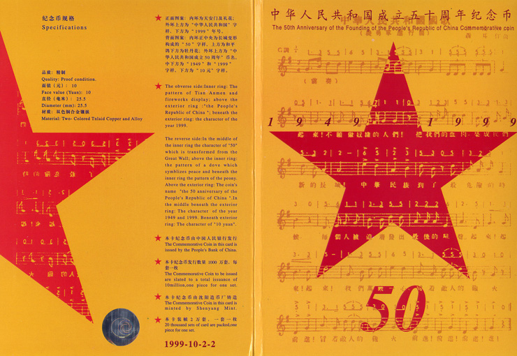 [组图]庆祝中华人民共和国成立50周年普通纪念币(精制)