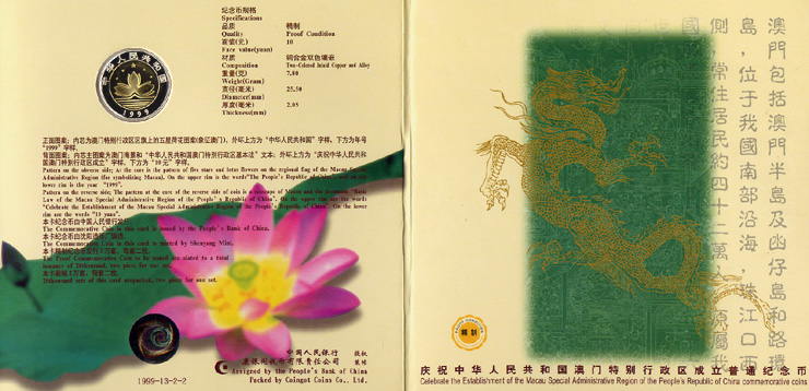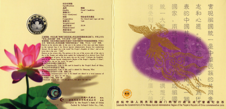 [组图]庆祝中华人民共和国澳门特别行政区成立普通纪念币(精制)