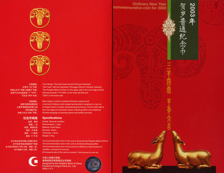 [组图]2003年贺岁普通纪念币(三阳开泰)