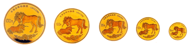 95年版麒麟全套5枚1oz+1/2oz+1/4oz+1/10oz+1/20oz