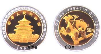 1997年版熊猫金币银圈1/2+1/5oz