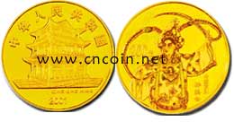 正面图案:为颐和园德和园大戏楼,并刊国名、年号;背面图案:为京剧《群英会》人物造型,并刊面额。