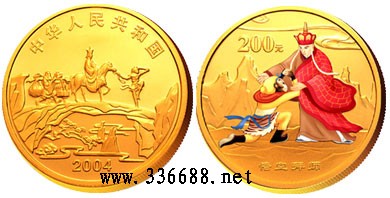 正面图案:西天取经图,并刊国名、年号背面图案:悟空拜师图,并刊面额
