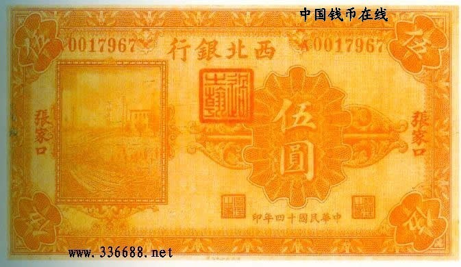 [图文]民国14年西北银行国币券   5元         ★★★