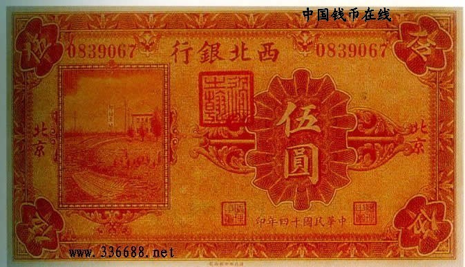[图文]民国14年西北银行国币券   5元         ★★★