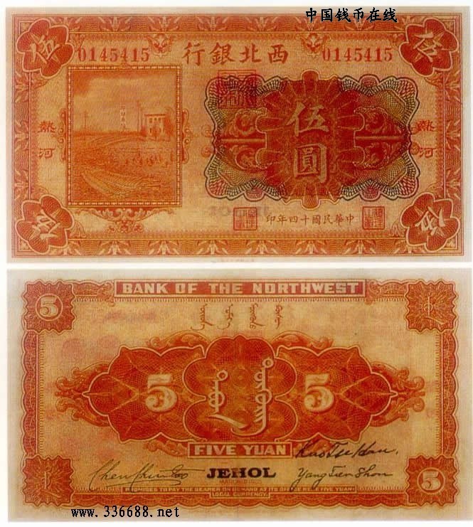 [图文]民国14年西北银行国币券   5元         ★★★