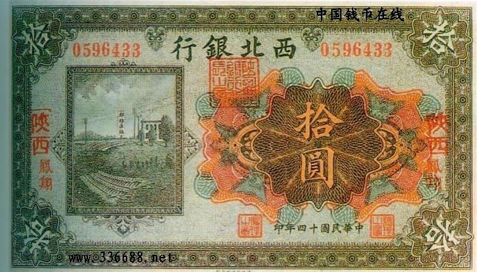 [图文]民国14年西北银行国币券   10元         ★★★