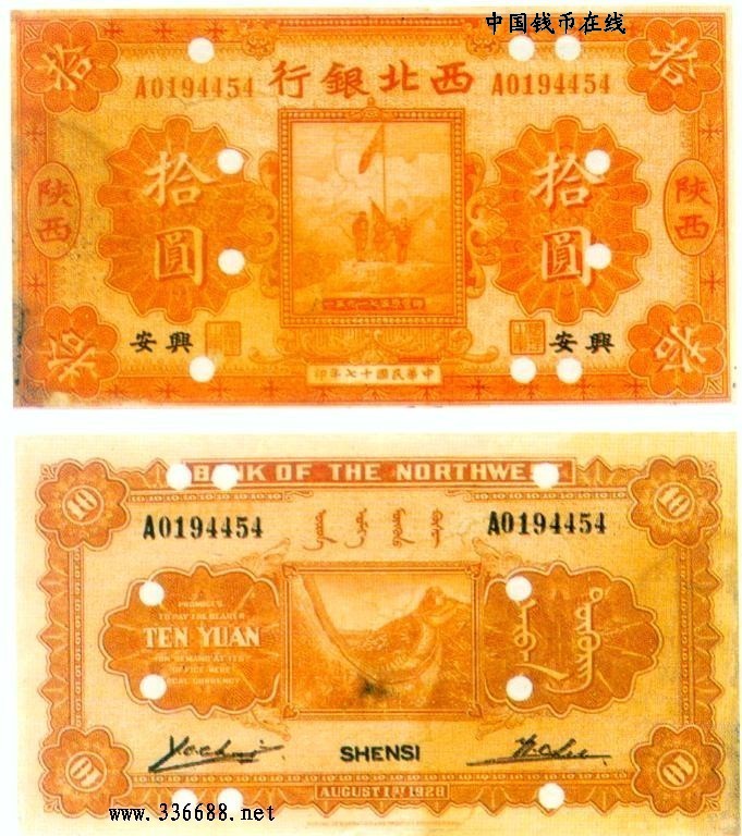 [图文]民国17年西北银行国币券   10元         ★★★