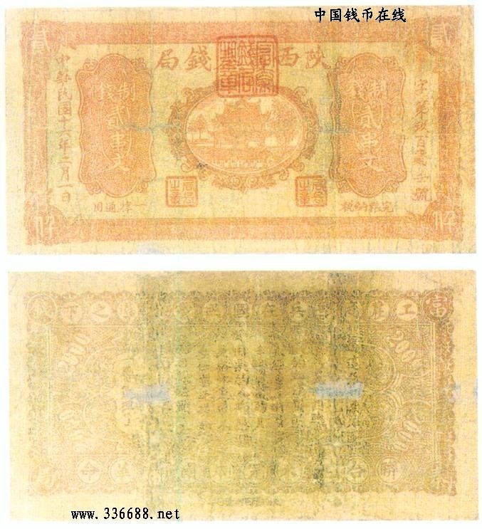 [图文]民国16年陕西富秦钱局制钱票   2串文         ★★★