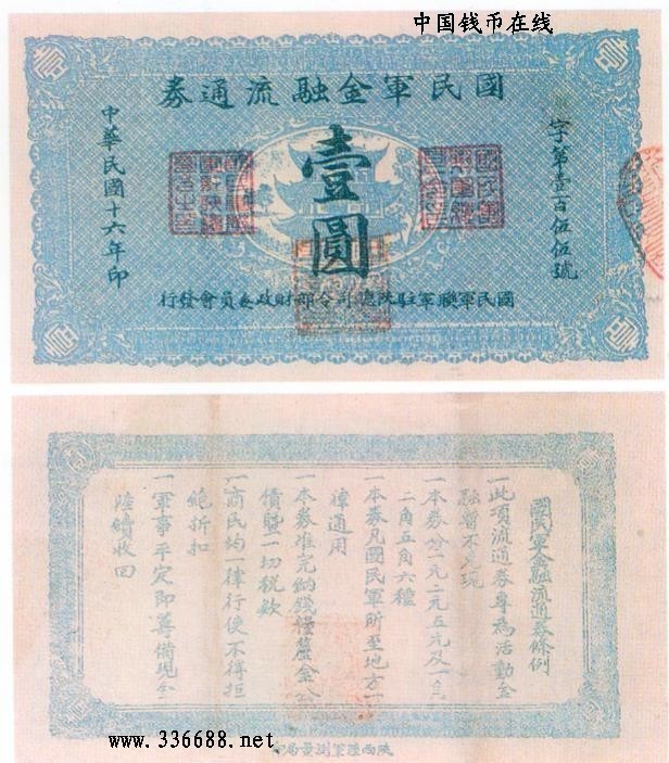 [图文]民国16年国民军金融流通券   1元         ★★★