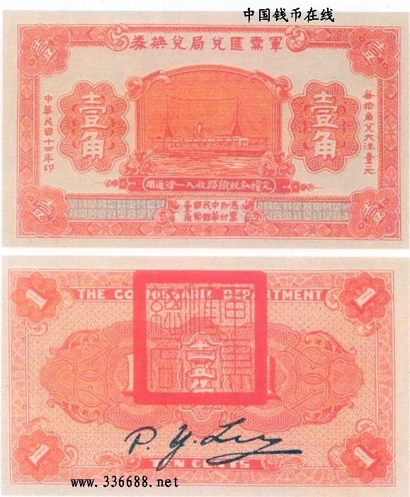 [图文]民国14年军需汇兑局兑换券   1角         ★★★