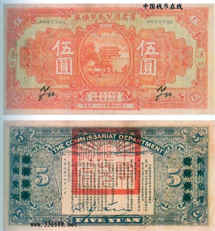 [图文]民国14年军需汇兑局兑换券   5元         ★★★