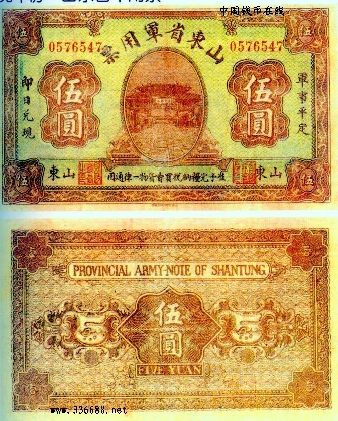 [图文]无年份山东省军用票   5元         ★★★