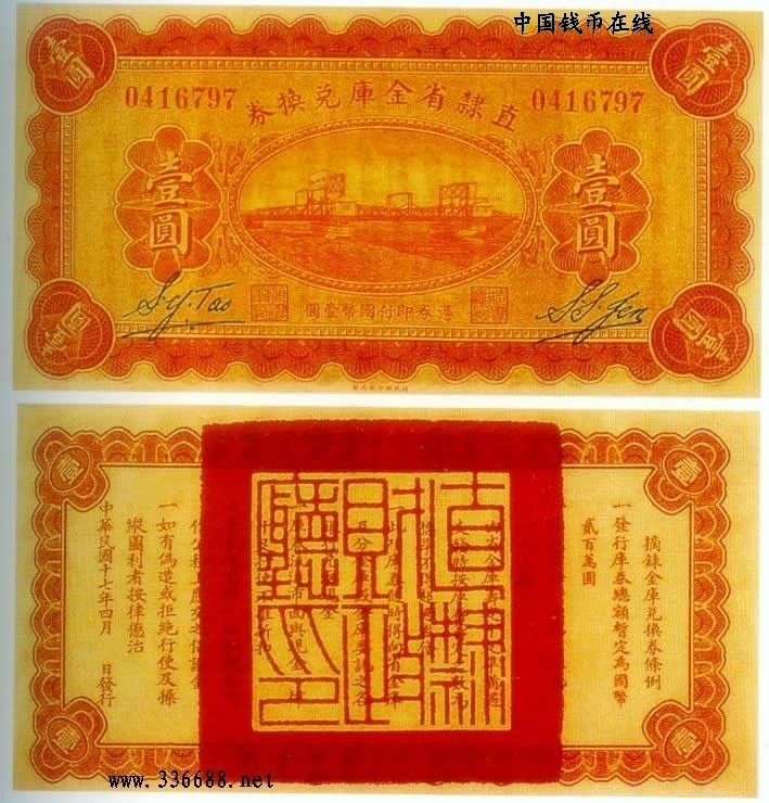 [图文]民国17年直隶省金库兑换券   1元         ★★★