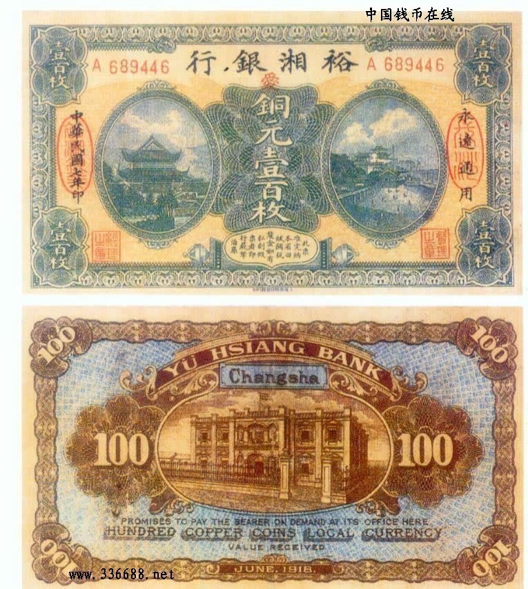 [图文]民国7年裕湘银行铜圆券   100枚         ★★★