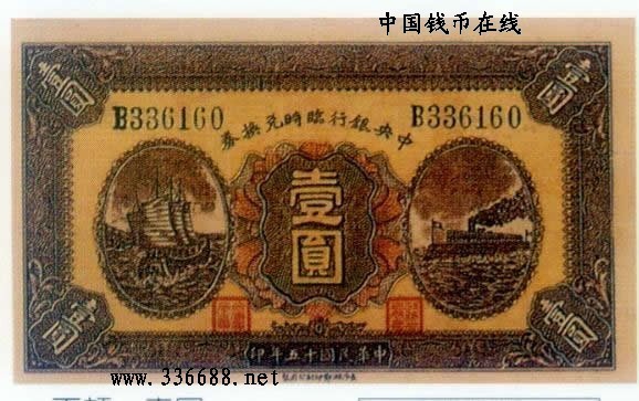 [组图]民国15年中央银行临时兑换券   1元         ★★★