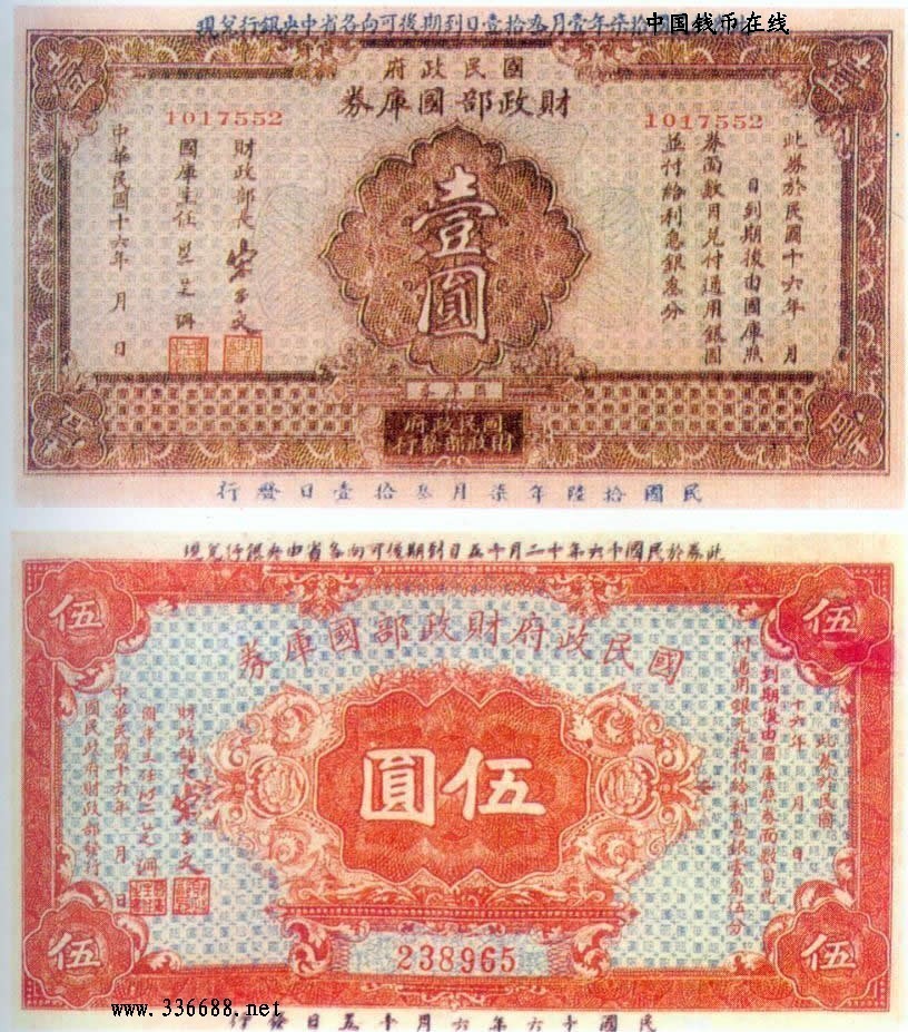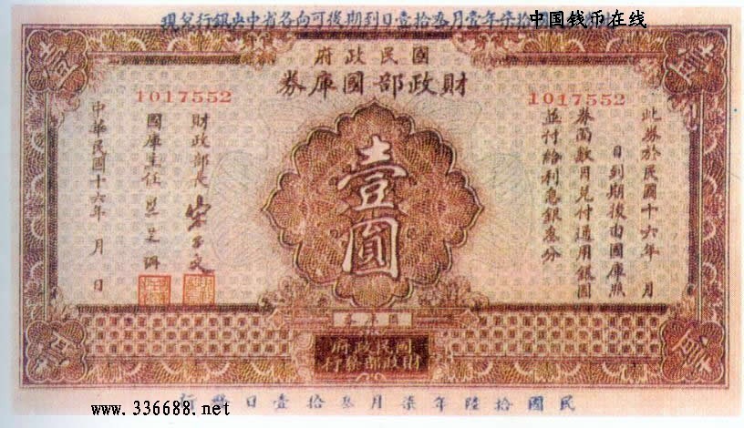 [组图]民国16年国民政府财政部国库券   1元         ★★★