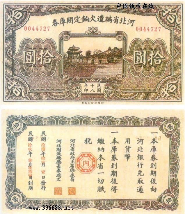 [图文]民国18年河北省编遣欠饷定期库券   10元         ★★★