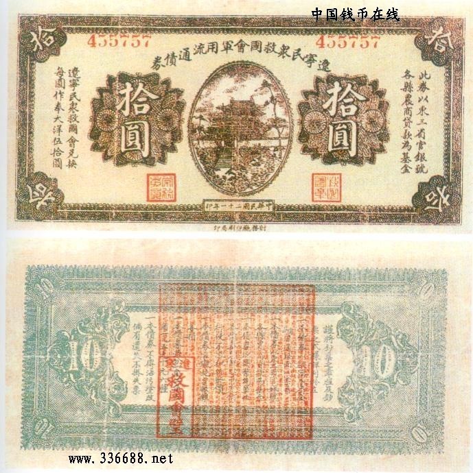 [图文]民国21年辽宁民众救国会军用流通券   10元         ★★★