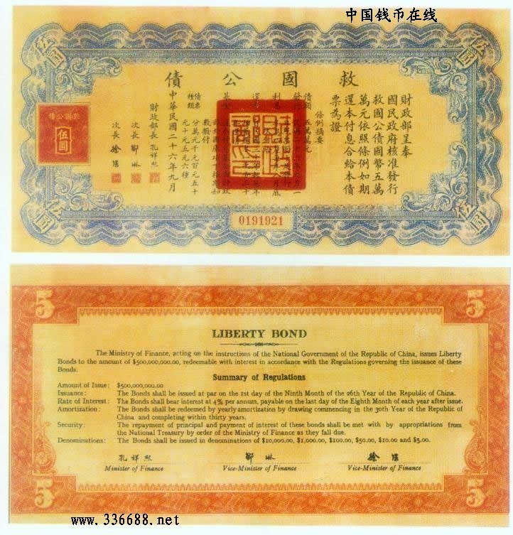 [图文]民国26年救国公债   5元         ★★★