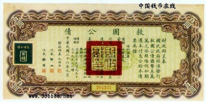[图文]民国26年救国公债   100元         ★★★