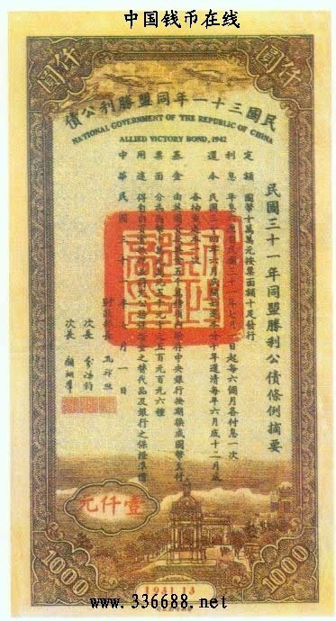 [图文]民国31年同盟胜利美金公债券   1000元         ★★★