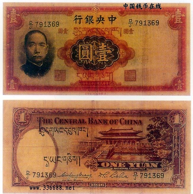 [图文]民国25年中央银行加盖藏文供远征军军用票   1元         ★★★