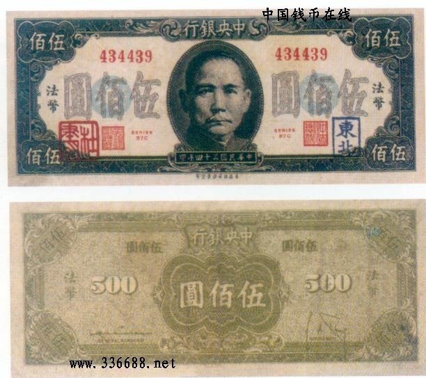 [图文]民国34年中央银行加盖"东北""杜聿明"军用票  500元         ★★★