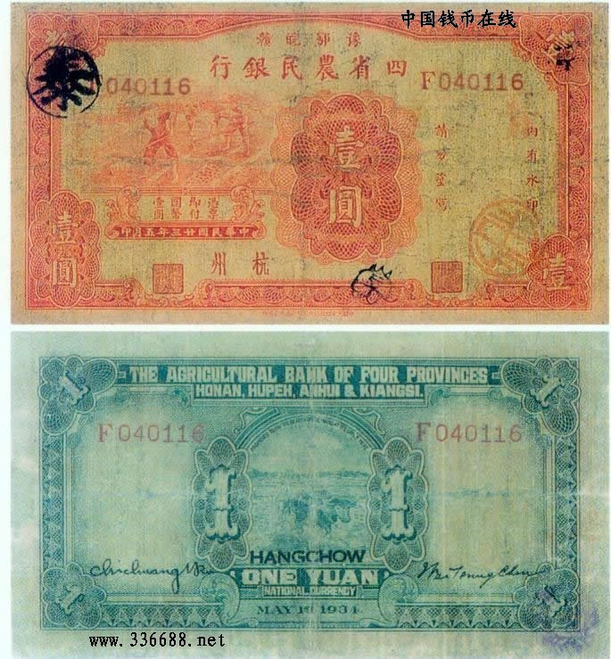 [图文]民国22年豫鄂皖赣四省农民银行券   1元         ★★★