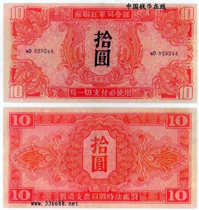 [图文]1945年苏联红军司令部票   10元         ★★★
