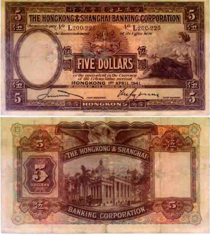 [图文]香港上海汇丰银行1941年5圆