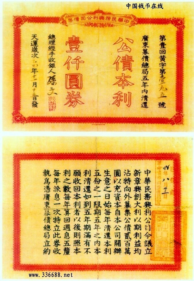 [图文]1905年   中华民务兴利公司债券   1000元         ★★★