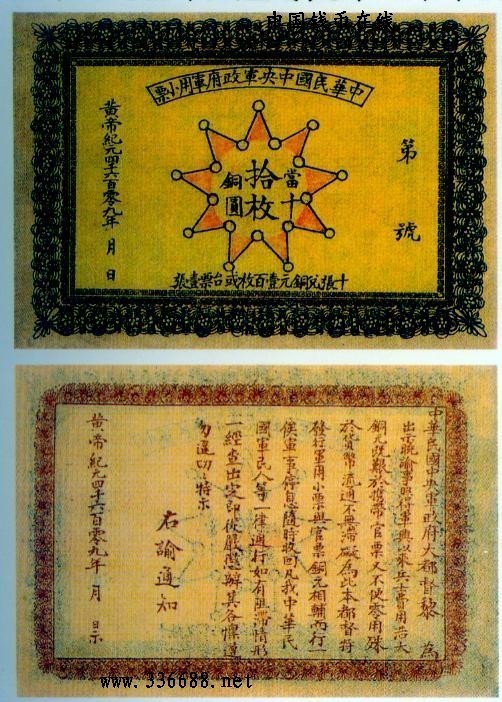 [图文]黄帝纪元4609年中华民国中央军政府军用小票  10枚         ★★★
